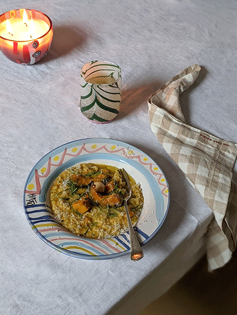 As it's November and we are very much deep in pumpkin season, I'm making a heartwarming delica pumpkin risotto with fennel, rosemary and confit garlic. It's so warming and perfect for a rainy evening in.