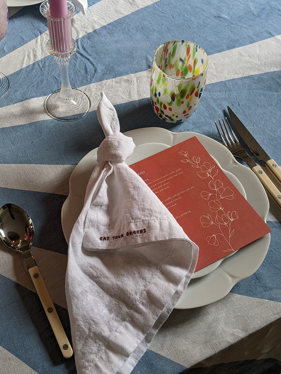 Flowers: I love using flowers as they can really change up your table - even if you’re using the same linens and tableware all the time. I love using seasonal flowers that I get a delivery of once every two weeks.