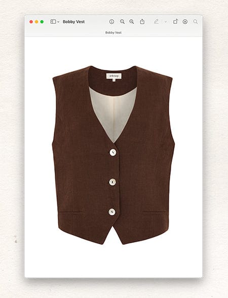 ‘The Bobby Vest is a great versatile layering pieces to pack for a holiday. Wear with nothing underneath and matching trousers or a silk slip skirt for balmy evening dinners, or use as a layer over a linen shirt if the temperatures start to drop.’