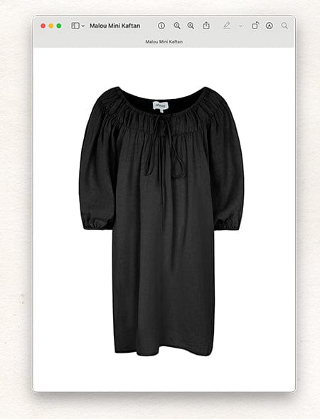 ‘A little black dress of some variety is a must-pack for its reliability. The Malou Mini Kaftan is a great throw-on item that is as at home on the beach as it is paired with statement jewellery and worn after dark.’